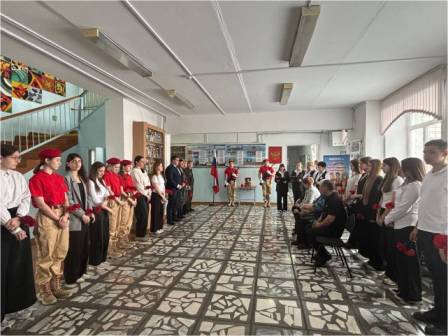 Директор школы Е. М. Русакова поблагодарила всех, кто хранит и чтит славные имена Героев, участников СВО.