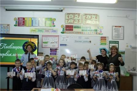 Классные руководители Шунько Е. В. и Шуликова Н. Н. вручили дипломы первоклассникам, памятки, сладкие призы,