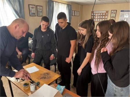 Учащиеся также имели возможность примерить защитное обмундирование, что добавило практический аспект в их понимание службы.